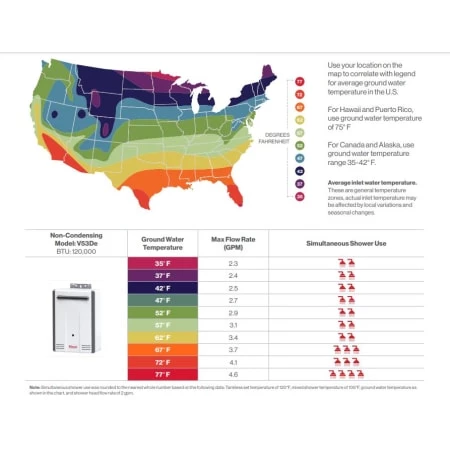 - Hot Water Capacity: 0.6 to 5.3 GPM @ 35° F Rise